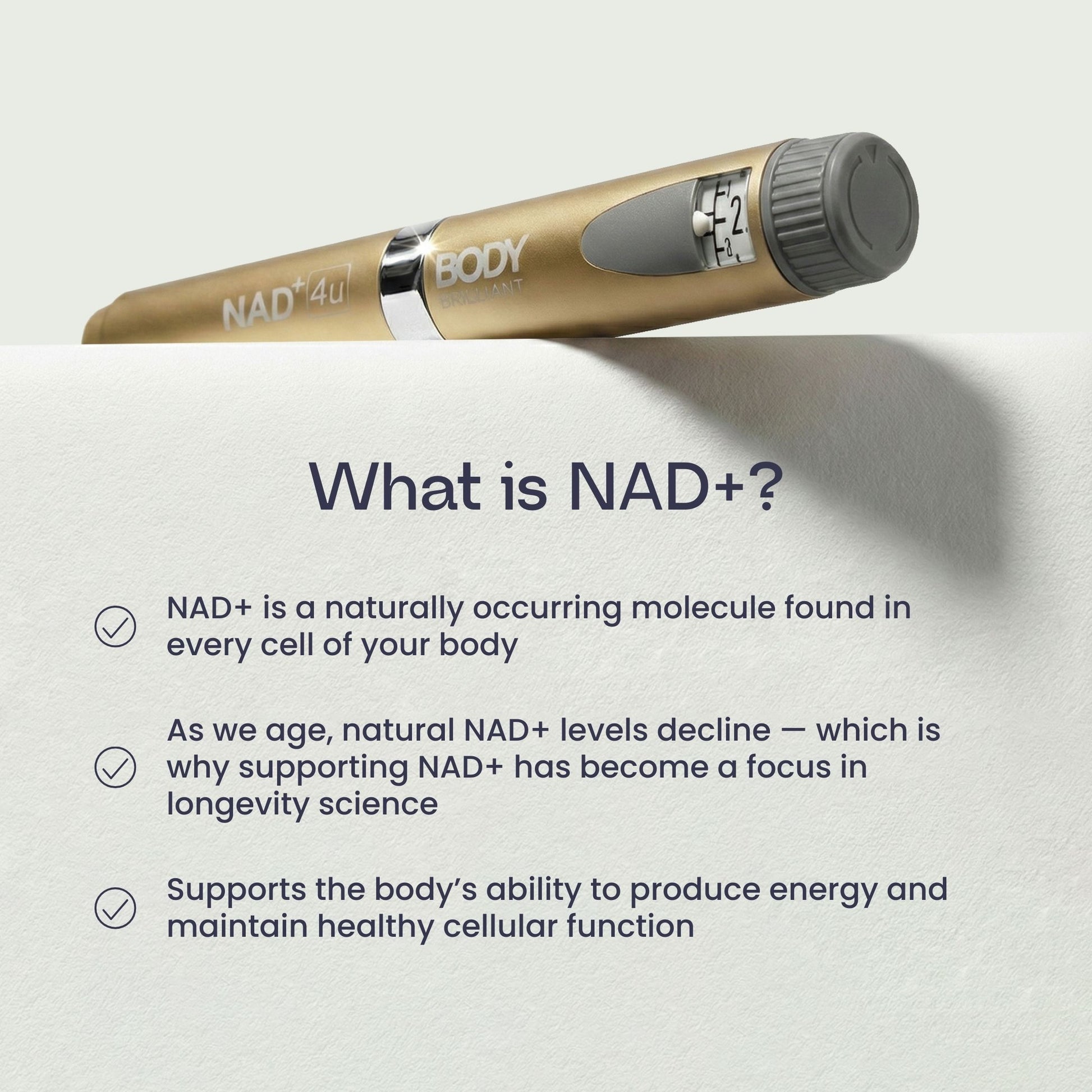 Take control of your health and energy today. Order the NAD+ 4u Pen Starter Kit and start rejuvenating at the cellular level!